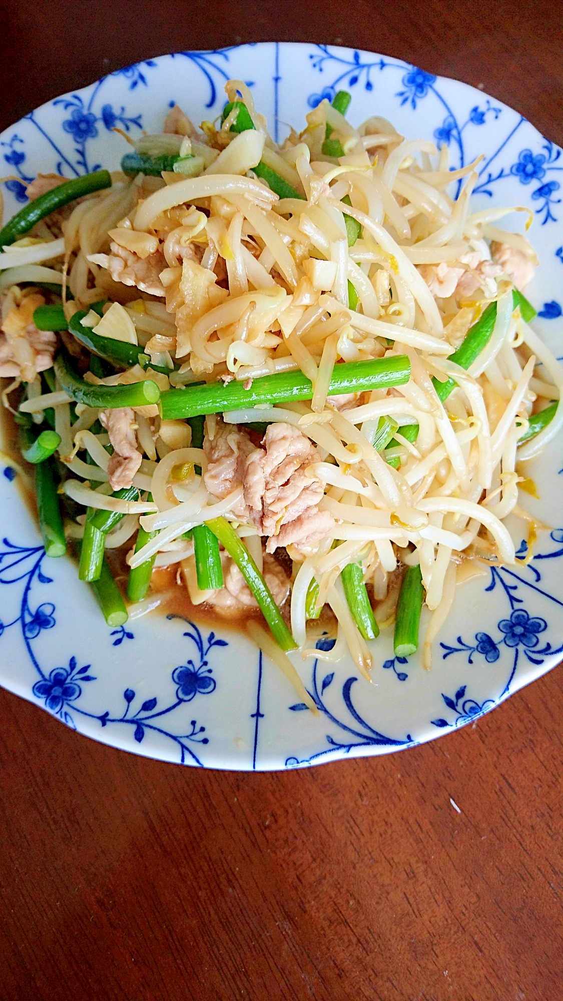 もやしと豚バラのにんにく醤油炒め ๑ ㅂ ๑ ŧ ŧ ティータイム ๑ ㅂ ๑ ŧ ŧ